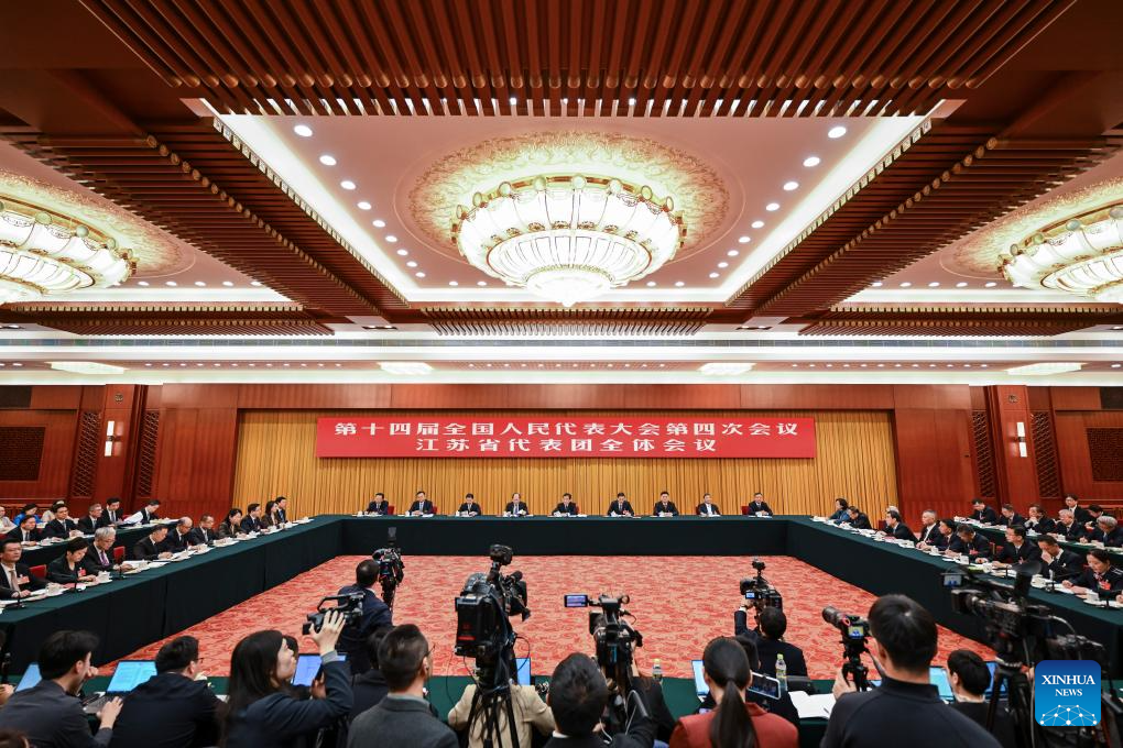 A group meeting of deputies from the delegation of Jiangsu Province is held at the fourth session of the 14th National People's Congress (NPC) in Beijing, capital of China, March 7, 2026. (Xinhua/Cai Xiangxin)