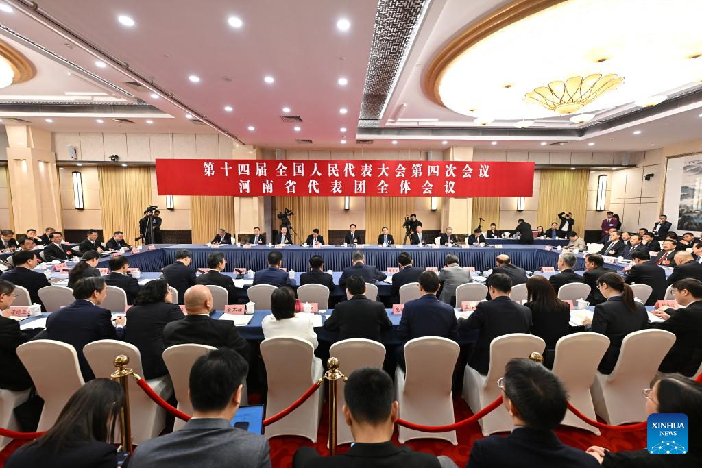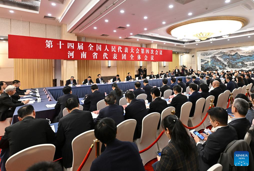 A group meeting of deputies from the delegation of Henan Province is held at the fourth session of the 14th National People's Congress (NPC) in Beijing, capital of China, March 7, 2026. (Xinhua/Li Xin)