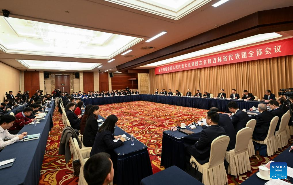 A group meeting of deputies from the delegation of Jilin Province is held at the fourth session of the 14th National People's Congress (NPC) in Beijing, capital of China, March 7, 2026. (Xinhua/Cheng Tingting)