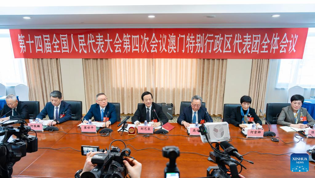 A group meeting of deputies from the delegation of the Macao Special Administrative Region is held at the fourth session of the 14th National People's Congress (NPC) in Beijing, capital of China, March 7, 2026. (Xinhua/Li Minggang)