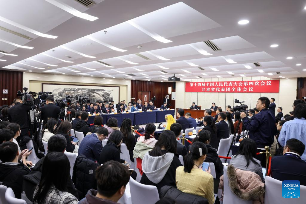 A group meeting of deputies from the delegation of Gansu Province is held at the fourth session of the 14th National People's Congress (NPC) in Beijing, capital of China, March 7, 2026. (Xinhua/Jin Liwang)