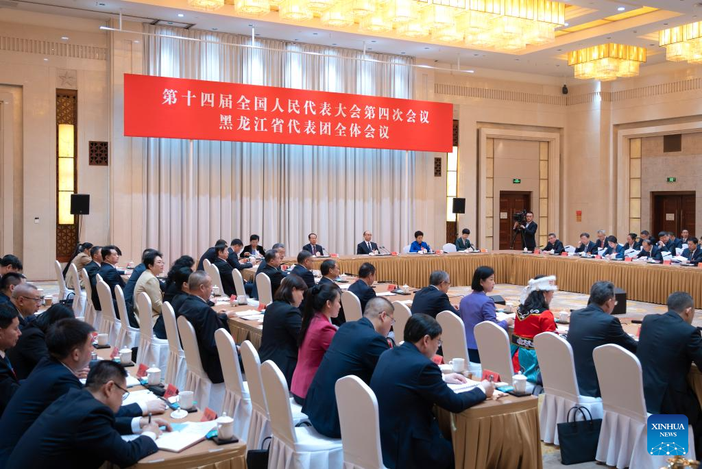 A group meeting of deputies from the delegation of Heilongjiang Province is held at the fourth session of the 14th National People's Congress (NPC) in Beijing, capital of China, March 7, 2026. (Xinhua/Li Minggang)