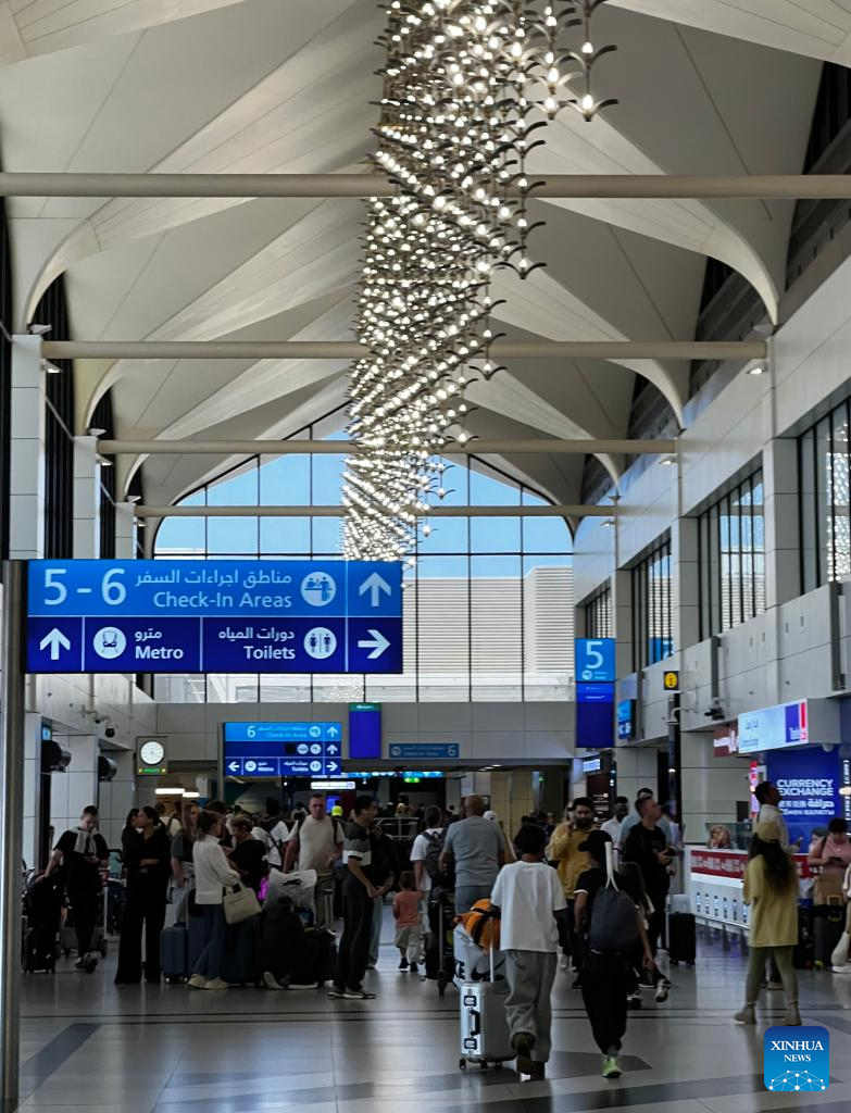 This photo taken on March 7, 2026 shows an interior view of Dubai International Airport in Dubai, the United Arab Emirates (UAE). Dubai-based carrier Emirates said on Saturday it has resumed flight operations at Dubai International Airport after a temporary suspension earlier in the day due to safety concerns. (Xinhua)