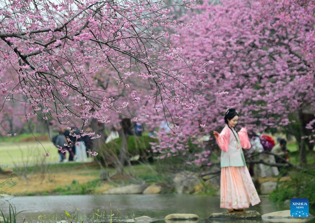 Tourists view flowers at a scenic area in Nanning, south China's Guangxi Zhuang Autonomous Region, March 7, 2026. (Photo by Yu Xiangquan/Xinhua)
