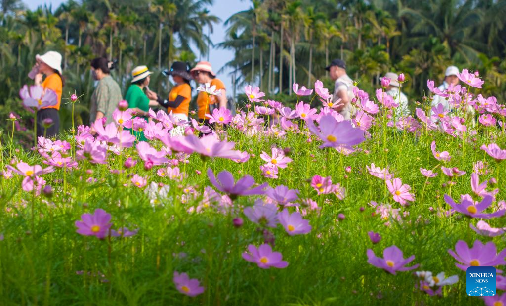 Tourists view flowers at Nanqiang Village of Boao Town, south China's Hainan Province, March 7, 2026. (Photo by Meng Zhongde/Xinhua)