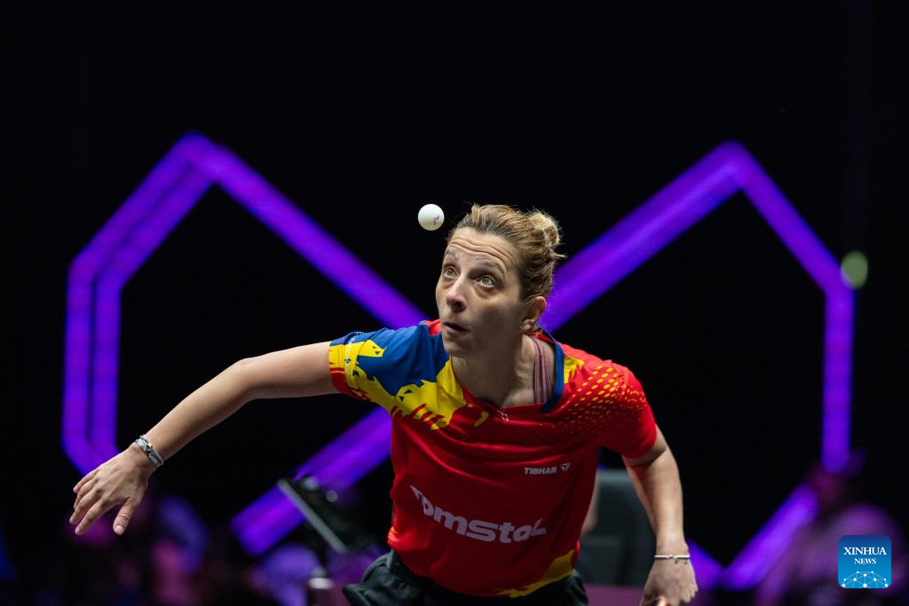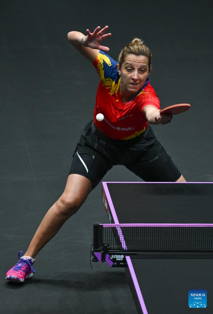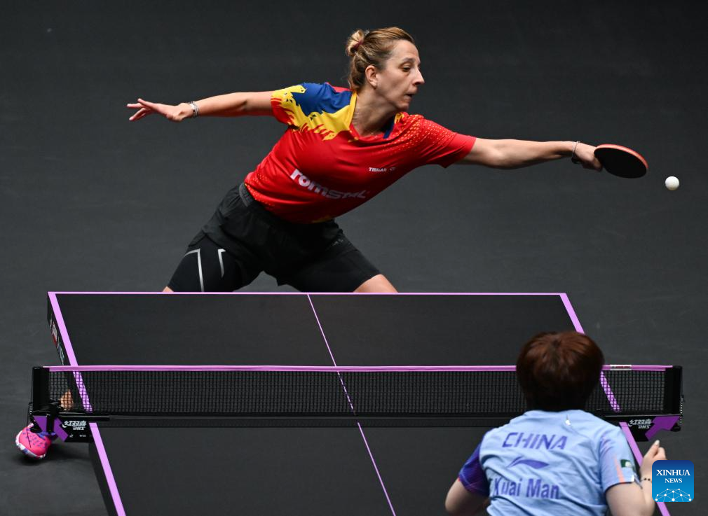 Elizabeta Samara of Romania hits a return during the women's singles round of 32 match against Kuai Man of China at the WTT Champions Chongqing 2026 in southwest China's Chongqing, March 10, 2026. (Xinhua/Chen Cheng)