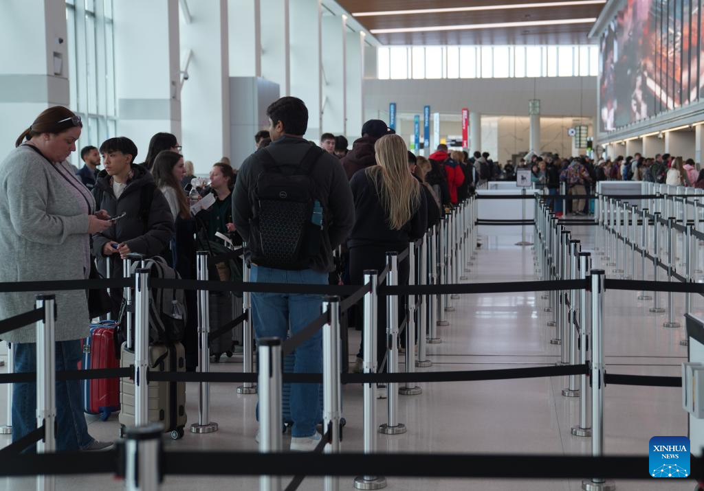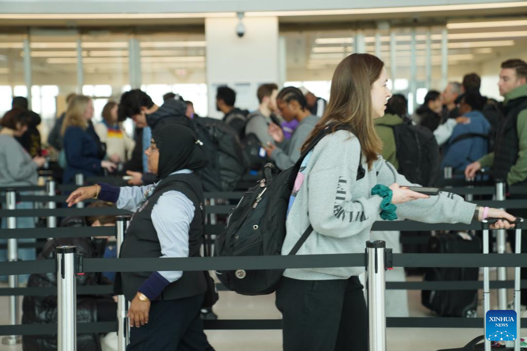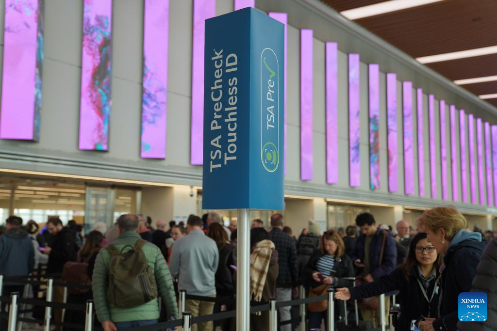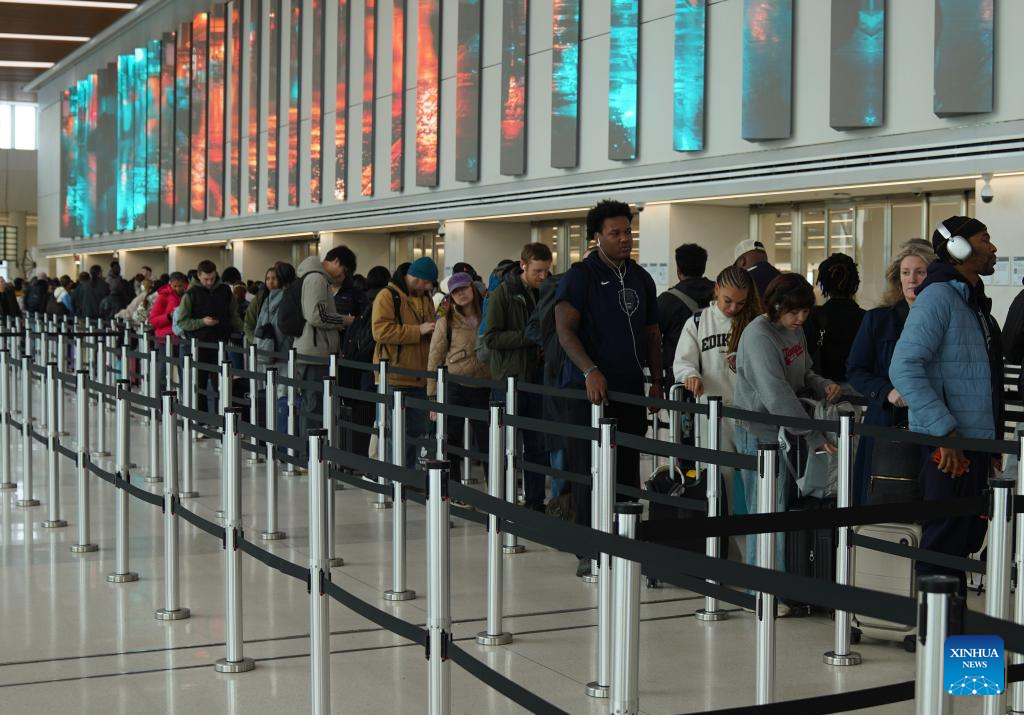 NEW YORK, March 13 (Xinhua) -- Major U.S. airports are seeing long lines at security checkpoints amid an ongoing partial government shutdown that has dragged on for nearly a month.