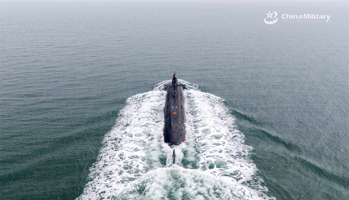 A submarine attached to a flotilla with the navy under the Chinese PLA Northern Theater Command steams towards the designated sea area during a maritime training exercise on March 4, 2026. (eng.chinamil.com.cn/Photo by Zhang Nan)