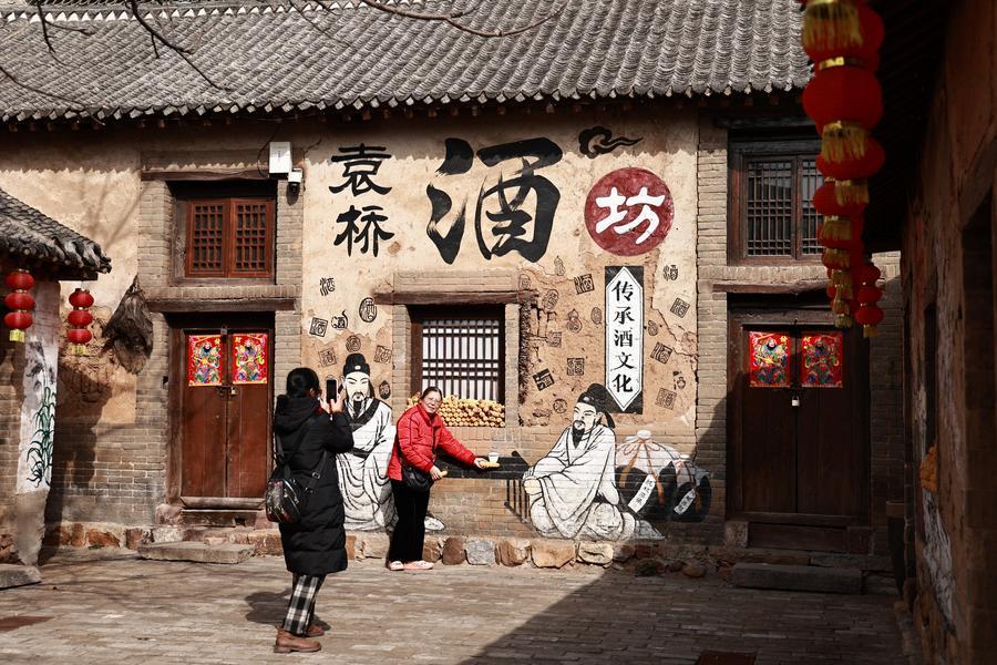 People visit Yuanqiao Village in Dengfeng City, central China's Henan Province, Feb. 10, 2026. (Xinhua/Ren Zhuoru)