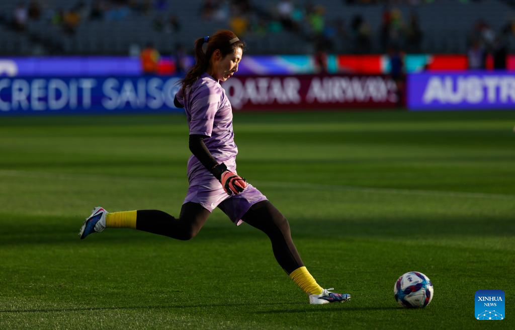 Peng Shimeng, goalkeeper of China, warms up before the semifinal of Women's Asian Cup between China and Australia at Perth Stadium in Perth, Australia, March 17, 2026. (Xinhua/Ma Ping)