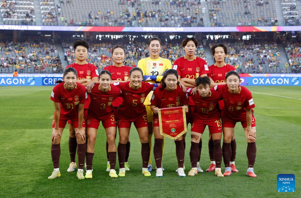 Players of China are seen before the semifinal of Women's Asian Cup between China and Australia at Perth Stadium in Perth, Australia, March 17, 2026. (Xinhua/Ma Ping)