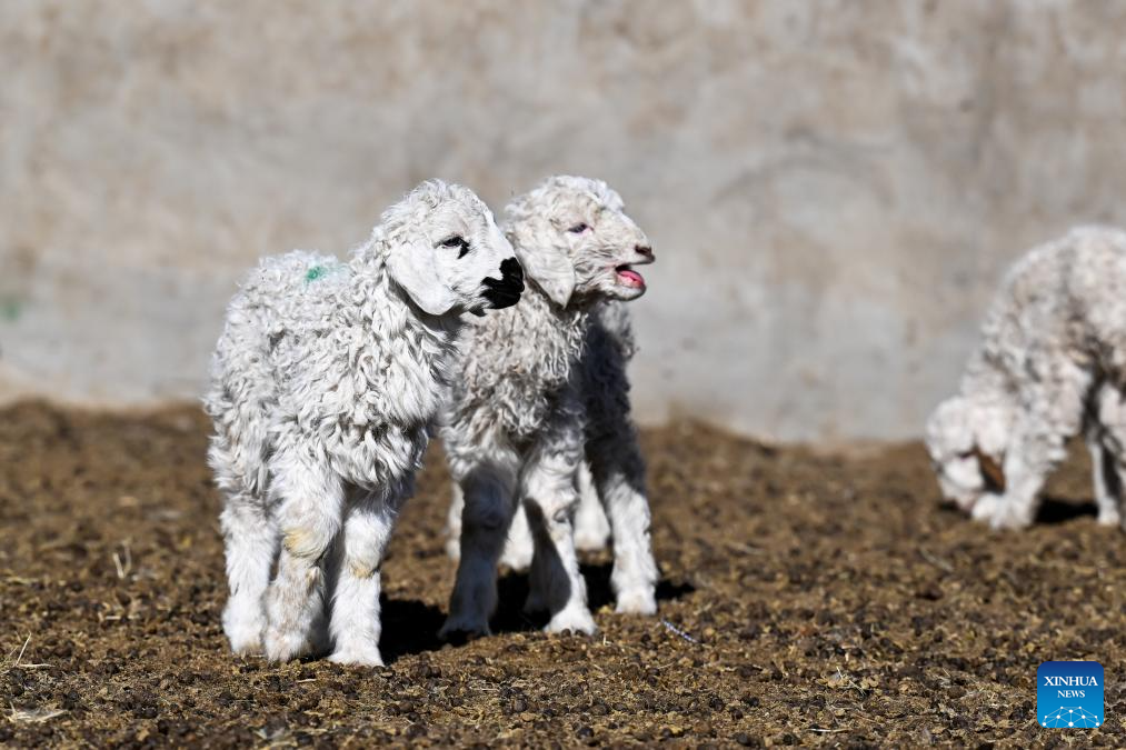 Lambs are pictured in East Ujimqin Banner of Xilingol League, north China's Inner Mongolia Autonomous Region, March 17, 2026. Herdsmen on the grasslands of Xilingol League in Inner Mongolia are busy with lamb breeding at present upon the season for lamb births in spring. (Xinhua/Li Zhipeng)