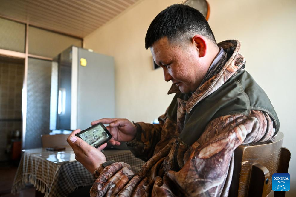 A herdsman checks the sheep flock through surveillance camera in East Ujimqin Banner of Xilingol League, north China's Inner Mongolia Autonomous Region, March 17, 2026. Herdsmen on the grasslands of Xilingol League in Inner Mongolia are busy with lamb breeding at present upon the season for lamb births in spring. (Xinhua/Li Zhipeng)
