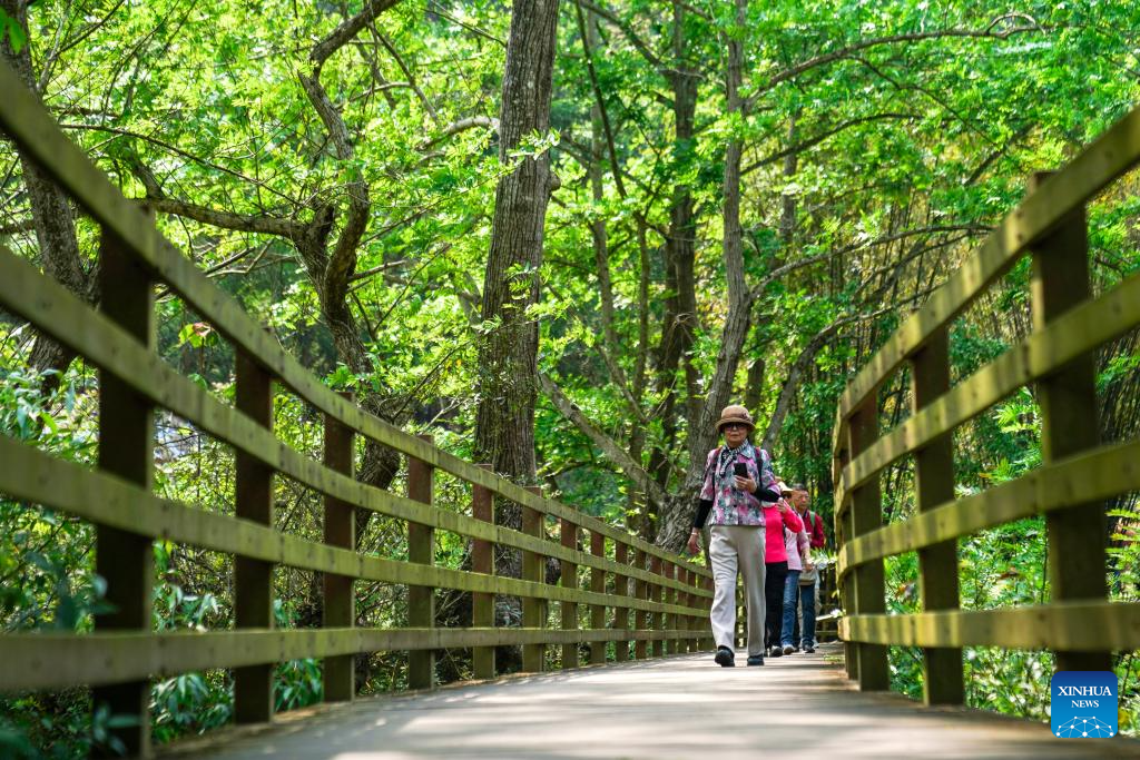 Tourists visit a scenic area in Bamei Village of Guangnan County, Wenshan Zhuang and Miao Autonomous Prefecture, southwest China's Yunnan Province, March 17, 2026. (Xinhua/Peng Yikai)