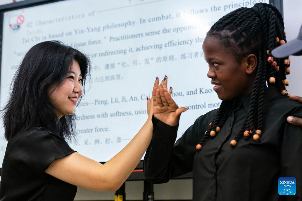 A teacher teaches a student to practice Taijiquan, a kind of Chinese traditional martial arts, in class at the Confucius Institute at the University of Nairobi, in Nairobi, Kenya, March 18, 2026. Upon the upcoming first International Taijiquan Day, the Confucius Institute at the University of Nairobi promoted Chinese traditional culture and fostered China-Kenya cultural exchange by teaching the history and cultural background of Taijiquan and organizing students to learn and practice the martial arts.