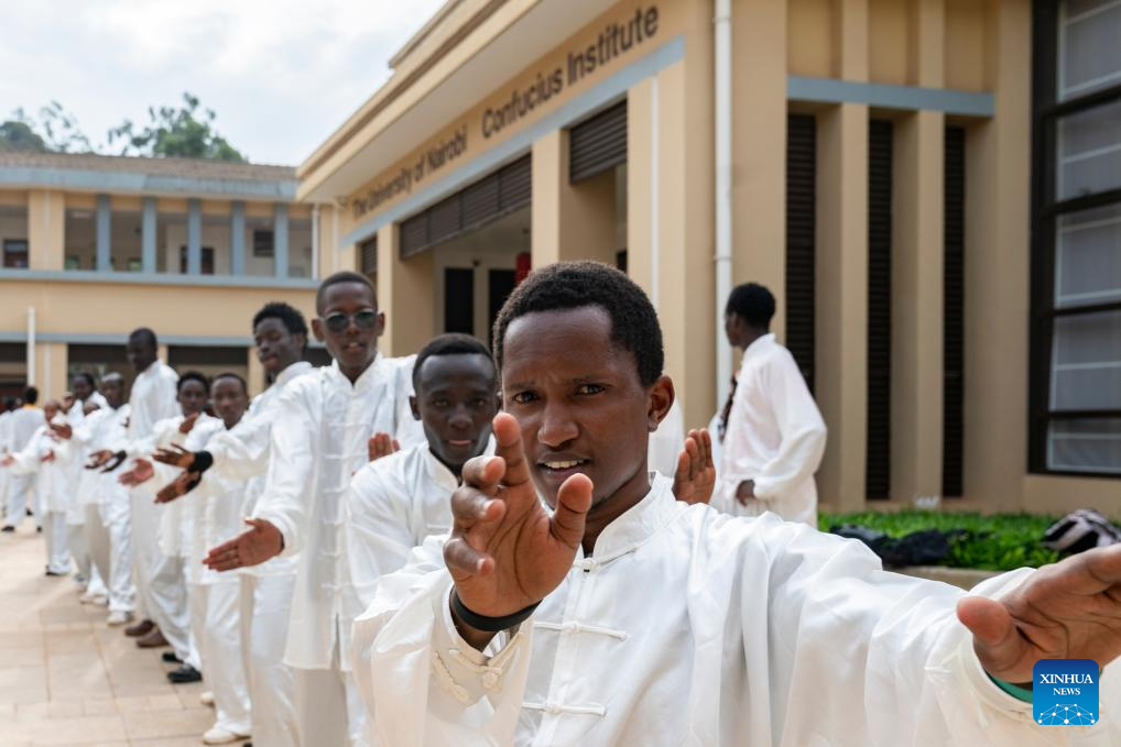 Students practice Taijiquan, a kind of Chinese traditional martial arts, at the Confucius Institute at the University of Nairobi, in Nairobi, Kenya, March 18, 2026. Upon the upcoming first International Taijiquan Day, the Confucius Institute at the University of Nairobi promoted Chinese traditional culture and fostered China-Kenya cultural exchange by teaching the history and cultural background of Taijiquan and organizing students to learn and practice the martial arts.