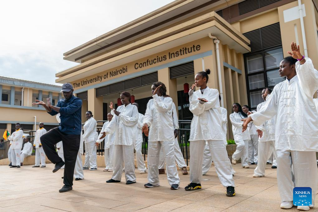 Students learn about Taijiquan, a kind of Chinese traditional martial arts, at the Confucius Institute at the University of Nairobi, in Nairobi, Kenya, March 18, 2026. Upon the upcoming first International Taijiquan Day, the Confucius Institute at the University of Nairobi promoted Chinese traditional culture and fostered China-Kenya cultural exchange by teaching the history and cultural background of Taijiquan and organizing students to learn and practice the martial arts.