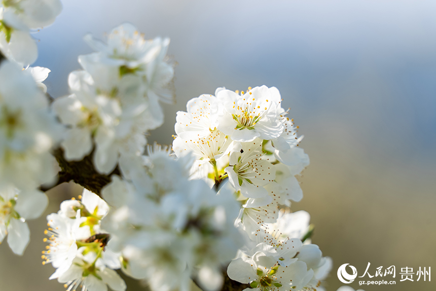Photo shows blooming plum flowers in Matou village, Xinpu Bouyei ethnic township, Wudang district, Guiyang, southwest China's Guizhou Province. (People's Daily Online/Tu Min)