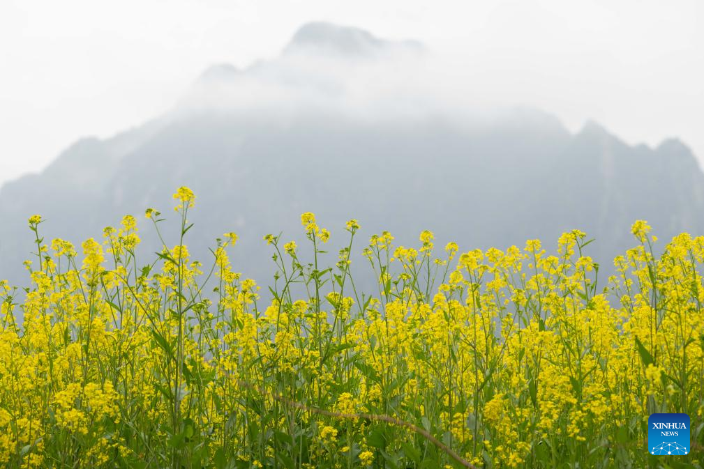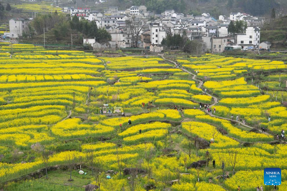 This photo taken on March 22, 2026 shows rapeseed flowers in Xingfu Village, Jixi County, Xuancheng City, east China's Anhui Province. (Xinhua/Zhang Duan)