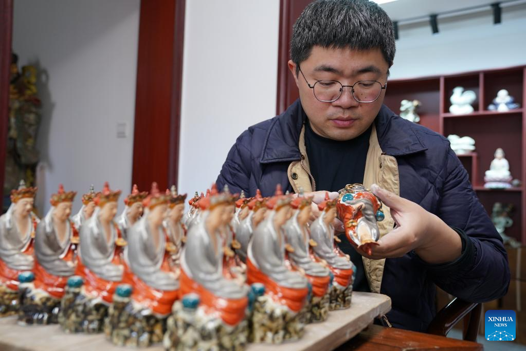 Zeng Rui, 36, is a fourth-generation inheritor of the family legacy. In 2011, he returned home to study ceramics under his father, mastering various sculpturing techniques. After the "Speechless Buddha" went viral in 2023, he set up a studio to recreate the original work and develop cultural and creative products inspired by it. For Zeng Rui, tradition is the foundation. By preserving classic themes and techniques while reinterpreting them for a contemporary audience, time-honored art can be revitalized. (Xinhua/Zhou Mi)