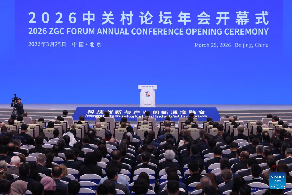This photo taken on March 25, 2026 shows a scene at the opening ceremony of the 2026 Zhongguancun Forum Annual Conference in Beijing, capital of China. The 2026 Zhongguancun Forum runs from March 25 to 29 under the theme "Full Integration Between Technological and Industrial Innovation." (Xinhua/Jin Liwang)