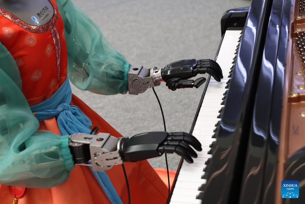 A humanoid robot plays the piano at the Zhongguancun International Innovation Center in Beijing, capital of China, March 25, 2026. The 2026 Zhongguancun Forum runs from March 25 to 29 under the theme "Full Integration Between Technological and Industrial Innovation." (Xinhua/Jin Liwang)