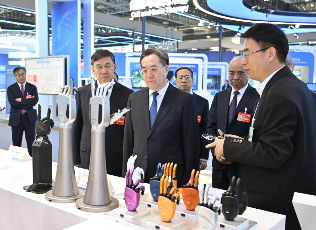 Chinese Vice Premier Ding Xuexiang, also a member of the Standing Committee of the Political Bureau of the Communist Party of China (CPC) Central Committee, visits an exhibition after addressing the opening ceremony of the 2026 Zhongguancun Forum (ZGC Forum) Annual Conference in Beijing, capital of China, March 25, 2026. (Xinhua/Gao Jie)