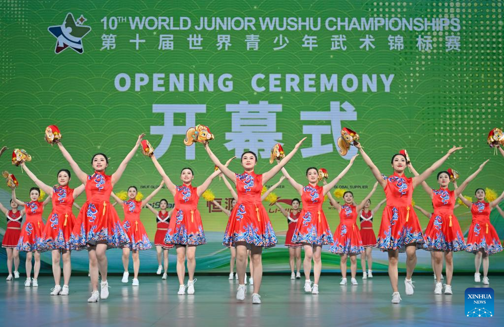 Opening ceremony of 10th World Junior Wushu Championships held in China's Tianjin