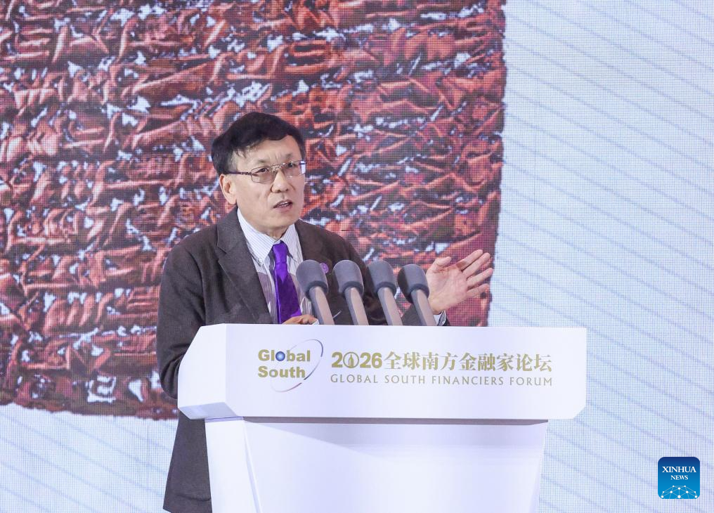 Liu Yuanchun, president of the Shanghai University of Finance and Economics, speaks at the 2026 Global South Financiers Forum in Beijing, capital of China, March 25, 2026. The forum opened in Beijing on Wednesday under the theme "Illuminating Global South." (Xinhua/Zhang Fan)
