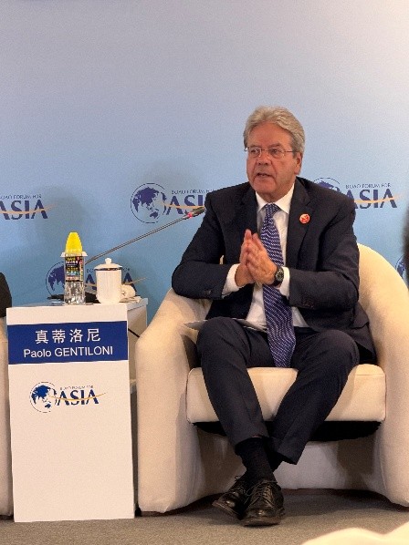 On Europe and China, Raffarin acknowledged plainly that China has a plan while Europe does not, and called for a shared vision of where both sides want to be in 2040. Gentiloni agreed, arguing that a stronger, more strategically autonomous Europe would be a better partner for China and Asia, not a more distant one.