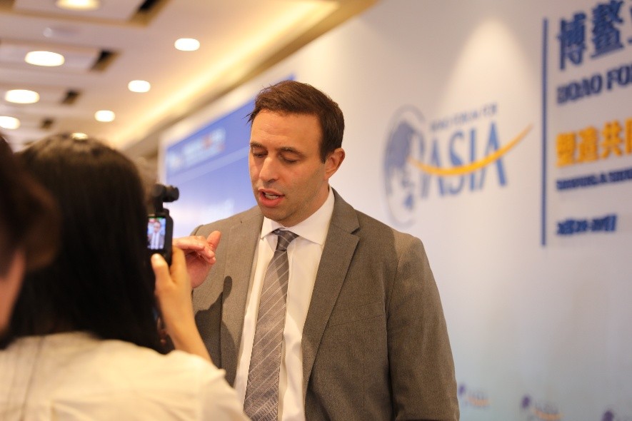 Jack Perry, chairman of the 48 Group Club and executive chairman of AEC Robotics takes questions at the Boao Forum for Asia 2026 Annual Conference in Boao, south China's Hainan Province. (People's Daily Online/Li Ze)