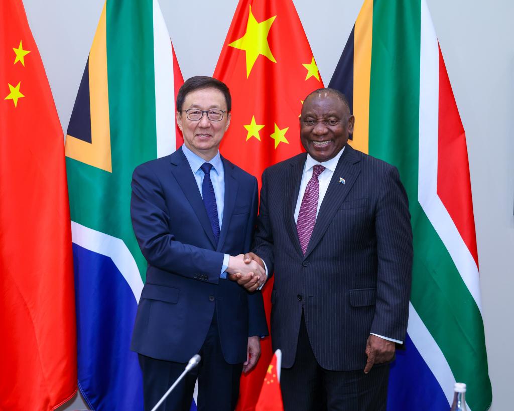 Han conveyed Chinese President Xi Jinping's cordial greetings and best wishes to Ramaphosa. During his visit, Han and his South African counterpart Paul Mashatile will co-chair the ninth plenary session of the China-South Africa Bi-National Commission. They will, under the guidance of the important consensus reached by Xi and Ramaphosa, comprehensively review the achievements of cooperation in key areas between the two countries and systematically plan the direction and key tasks for the next stage, he said.