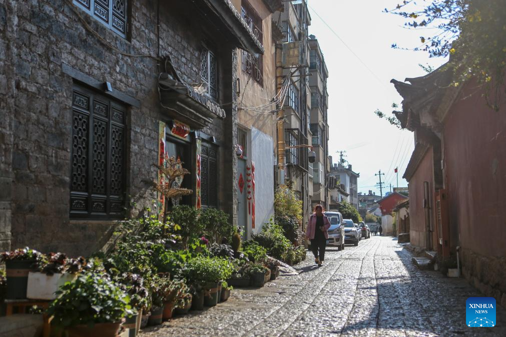 Residents walk on a street at the ancient city of Huize in Huize County, Qujing City of southwest China's Yunnan Province, March 25, 2026. Huize County in Qujing boasts a long history. Within the ancient city of Huize, more than 100 guild halls, temples, and ancestral halls still stand, while traditional residences from the Ming and Qing dynasties are scattered throughout the area.
