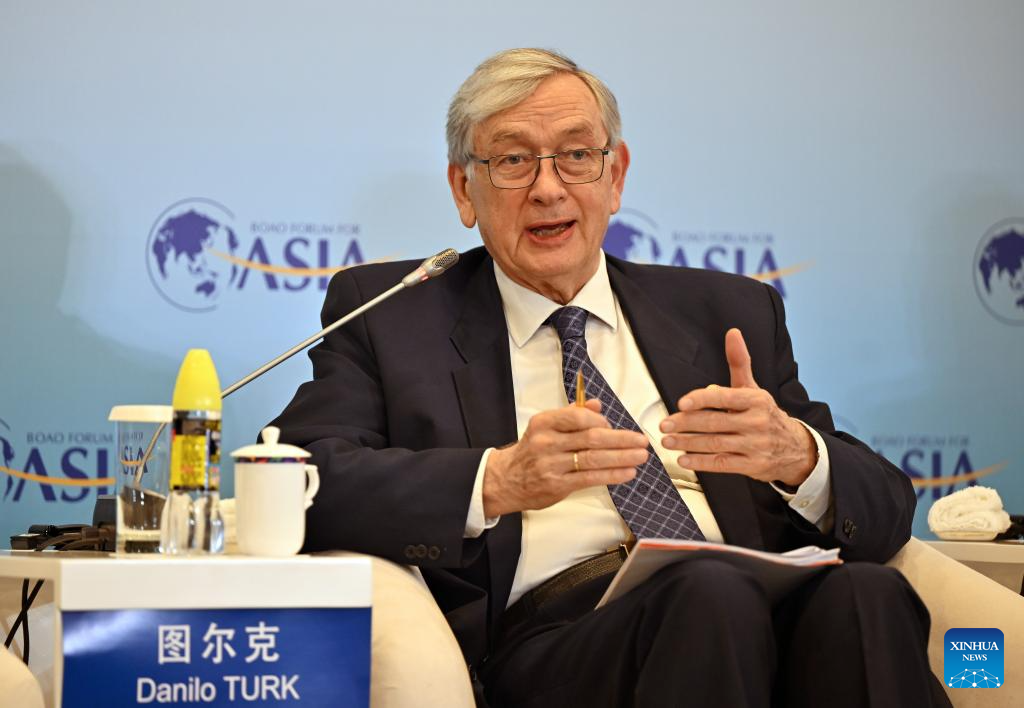 Danilo Turk, former president of Slovenia, speaks at a panel discussion themed on "Safeguarding Common Economic Security: the Power of the Rule of Law" during the Boao Forum for Asia (BFA) Annual Conference 2026 in Boao, south China's Hainan Province, March 26, 2026. (Xinhua/Guo Cheng)