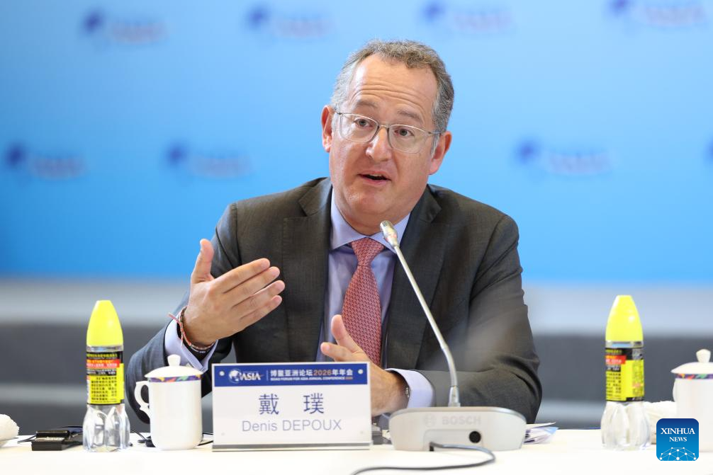 Denis Depoux, global managing director of Roland Berger, speaks at a panel discussion themed on "The AI Era: Ascending Dynamics for Industries" during the Boao Forum for Asia (BFA) Annual Conference 2026 in Boao, south China's Hainan Province, March 26, 2026. (Xinhua/Wang Yiliang)