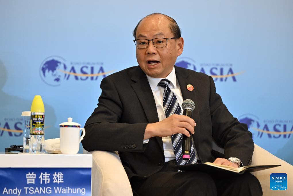 Tsang Wai Hung, deputy chief of China National Narcotics Control Commission, speaks at a panel discussion themed on "Safeguarding Common Economic Security: the Power of the Rule of Law" during the Boao Forum for Asia (BFA) Annual Conference 2026 in Boao, south China's Hainan Province, March 26, 2026. (Xinhua/Guo Cheng)