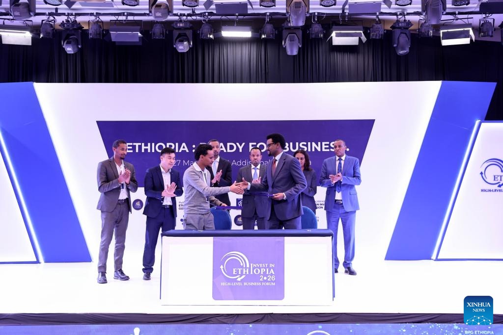 Guests attend the signing ceremony of investment deals during "Invest in Ethiopia" High-Level Business Forum in Addis Ababa, Ethiopia, March 27, 2026. Ethiopia's flagship investment forum, dubbed "Invest in Ethiopia," concluded on Friday with the signing of investment agreements worth over 13 billion U.S. dollars. The fourth edition of the forum was held under the theme "Ethiopia: Ready for Business" in Addis Ababa, the country's capital, attracting hundreds of investors, business leaders, and advisors from across the globe, according to the organizers. (Xinhua/Geng Xinning)