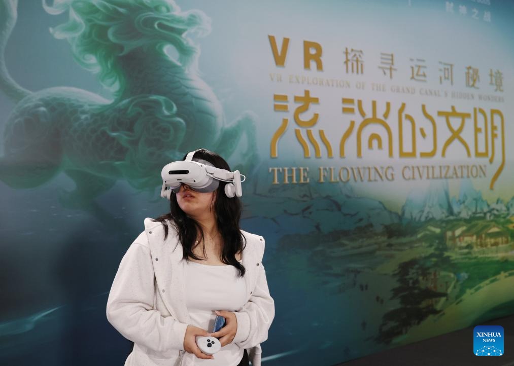 A visitor experiences a VR device during the International Sci-Fi and Future Tech Expo Beijing 2026 in Beijing, capital of China, March 27, 2026. (Xinhua/Zhang Chenlin)