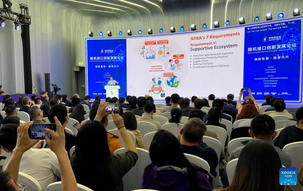 This photo taken on March 27, 2026 shows a scene at the Brain-Computer Interface Innovation Development Forum, a session of the 2026 Zhongguancun Forum (ZGC Forum) Annual Conference, in Beijing, capital of China. (Xinhua/Wei Mengjia)