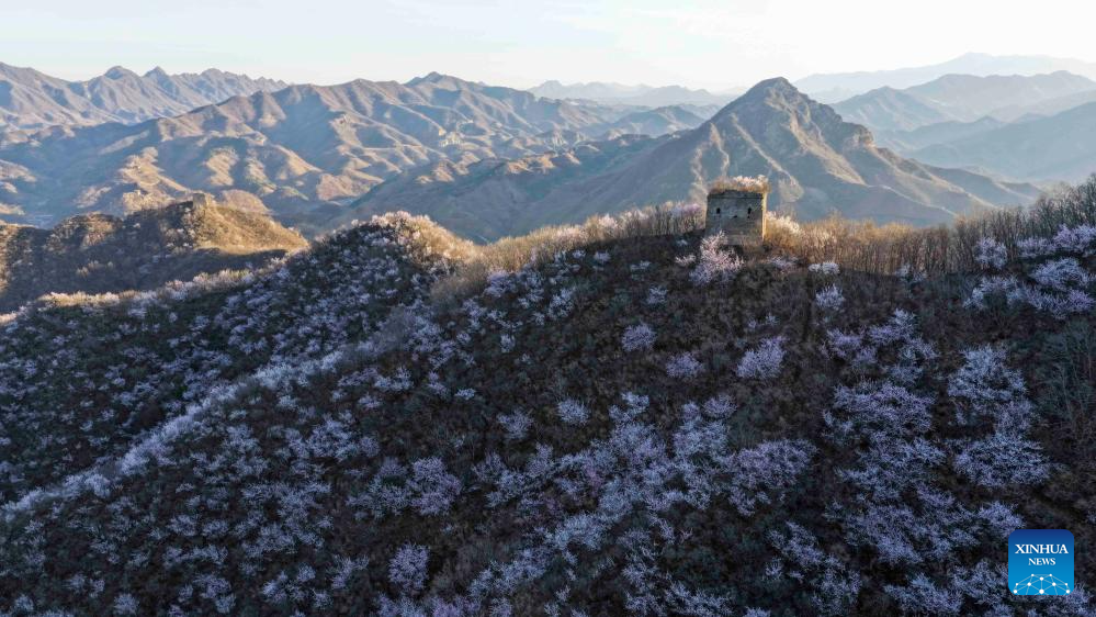 A drone photo taken on March 30, 2026 shows the spring scenery of the Great Wall in Qianxi County, north China's Hebei Province. (Photo by Liu Mancang/Xinhua)