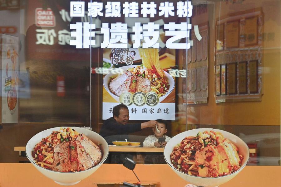 NANNING, March 29 (Xinhua) -- In Guangxi, rice noodles are served in many different ways, such as Luosifen, Guilin rice noodles, seafood rice noodles, Nanning Laoyou rice noodles and Shengzha rice noodles, with noodle shops found everywhere from busy streets to small lanes.