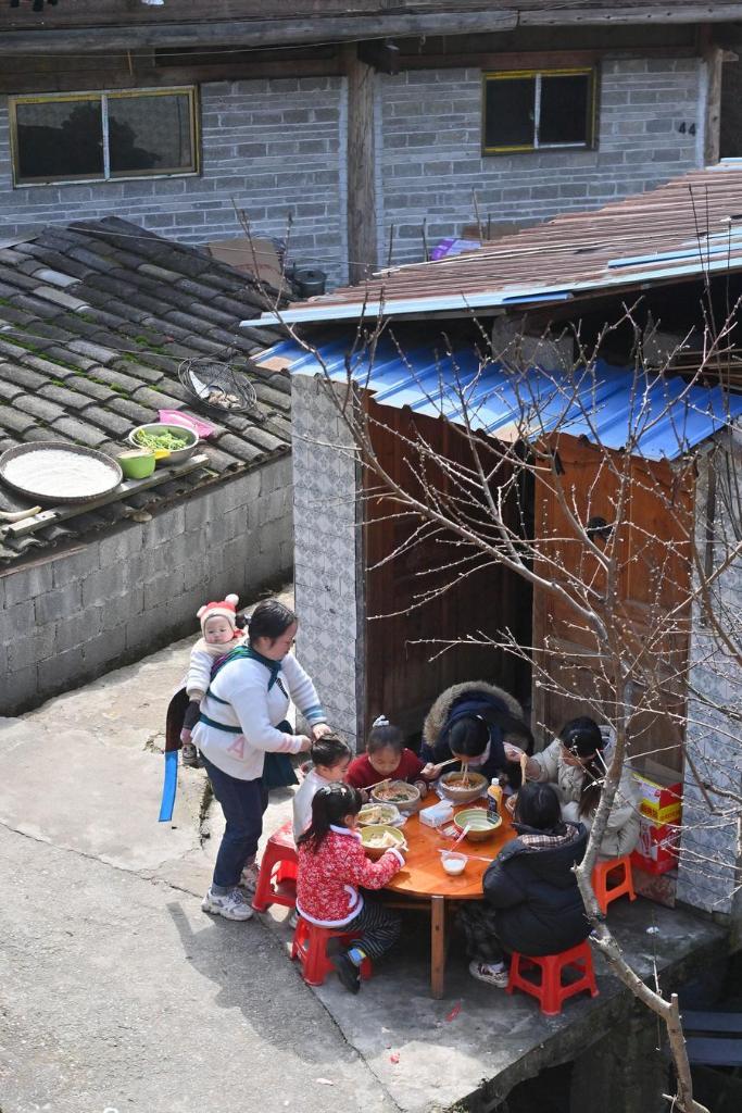 Villagers eat rice noodles at home in Dangjiu Village of Rongshui Miao Autonomous County, south China's Guangxi Zhuang Autonomous Region, Feb. 20, 2026. (Xinhua/Huang Xiaobang)