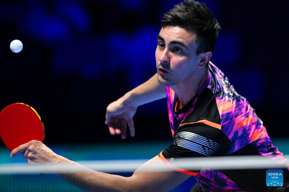 Stephane Ouaiche of Algeria competes during the men's singles group 15 match between Wen Ruibo of China and Stephane Ouaiche of Algeria at the ITTF Men's and Women's World Cup 2026 in Macao, China, March 31, 2026. (Xinhua/Cheong Kam Ka)