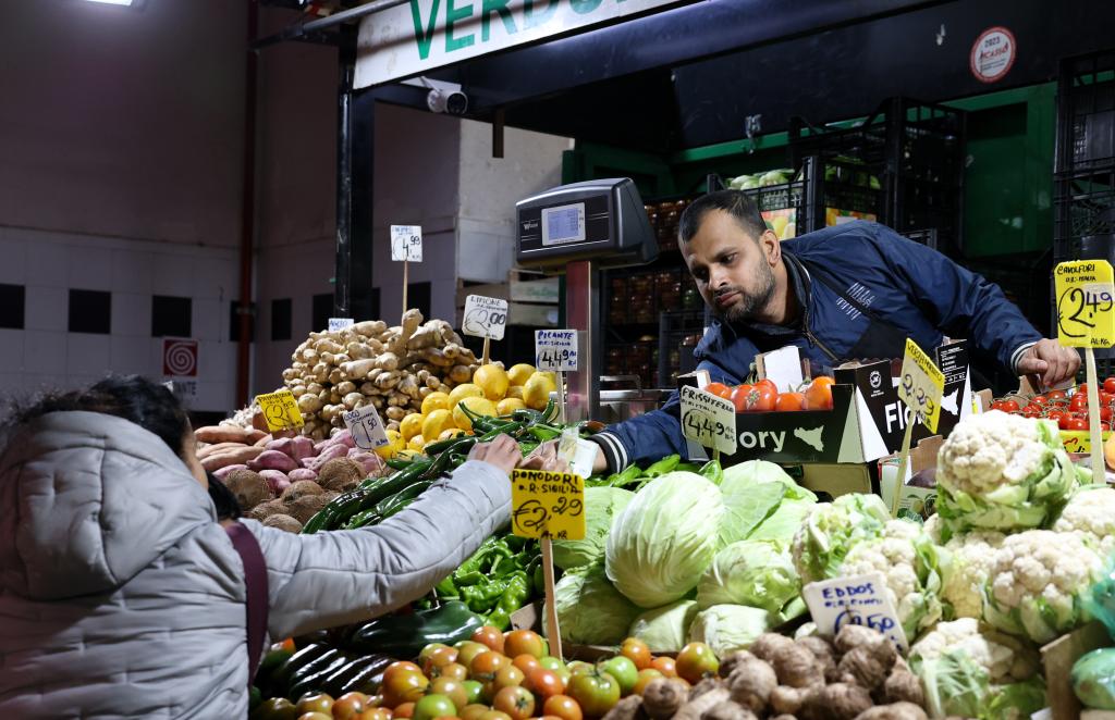 A customer buys groceries at a market in Rome, Italy, on March 31, 2026. (Xinhua/Li Jing)