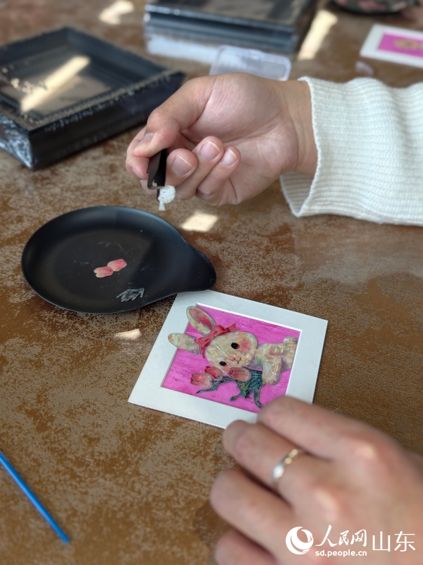 In an intangible cultural heritage workshop in the West Coast New Area of Qingdao, east China's Shandong Province, visitors are getting hands-on experience with Luodian — the millennia-old craft also known as mother-of-pearl inlay.
