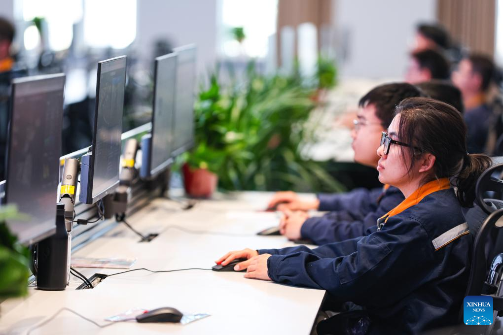 Workers supervise production at an aluminium company in Baotou, north China's Inner Mongolia Autonomous Region, March 31, 2026. In recent years, Baotou City has been accelerating the green and low-carbon development of the aluminium industry while extending the industrial chain, focusing on high-value-added products and creating an industrial cluster to promote local economic development. (Photo by Kang Wenkui/Xinhua)