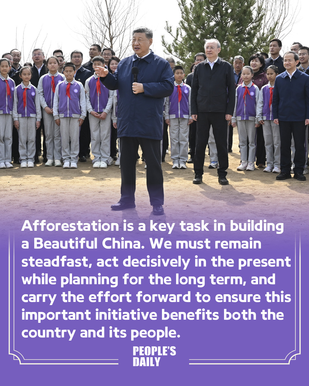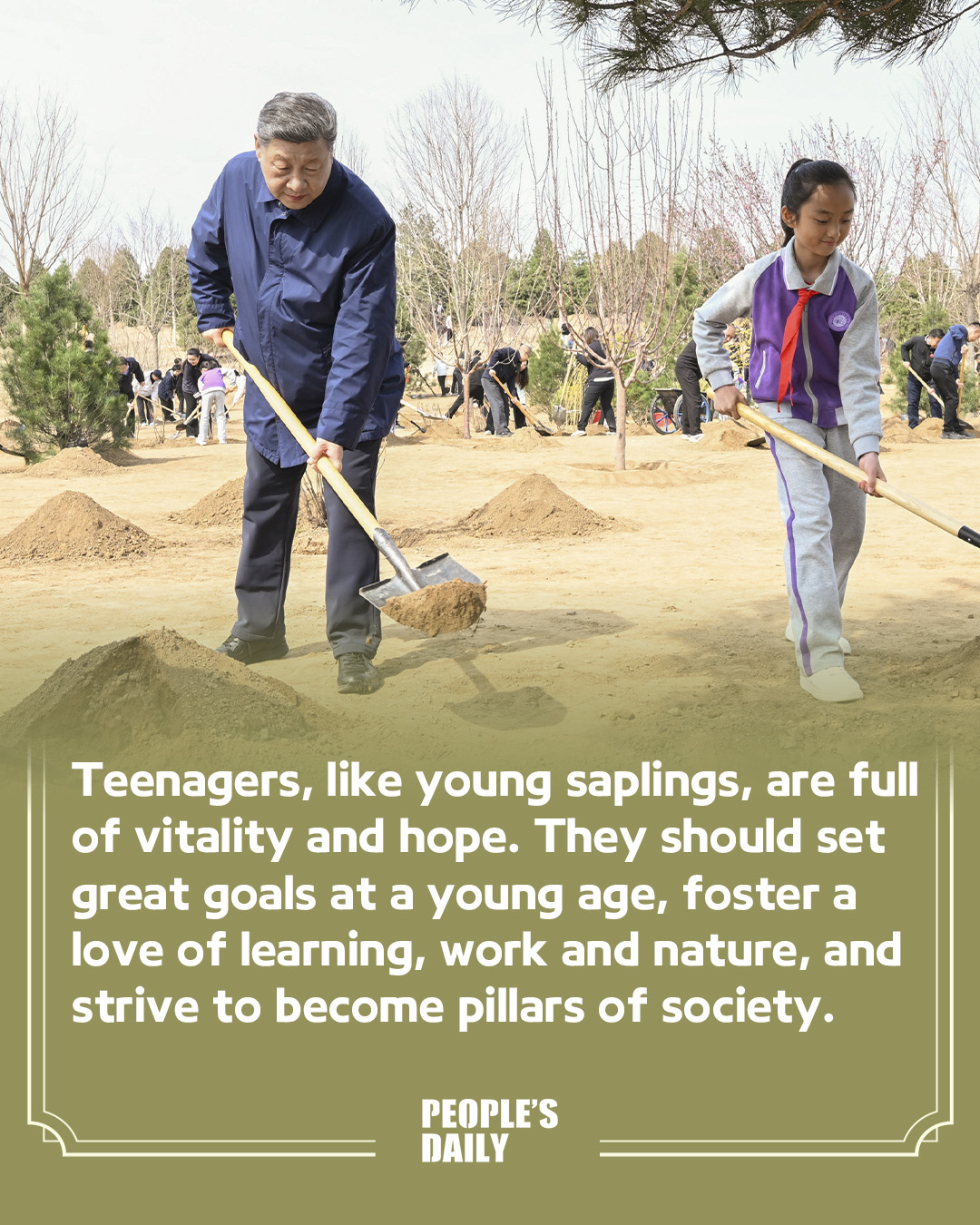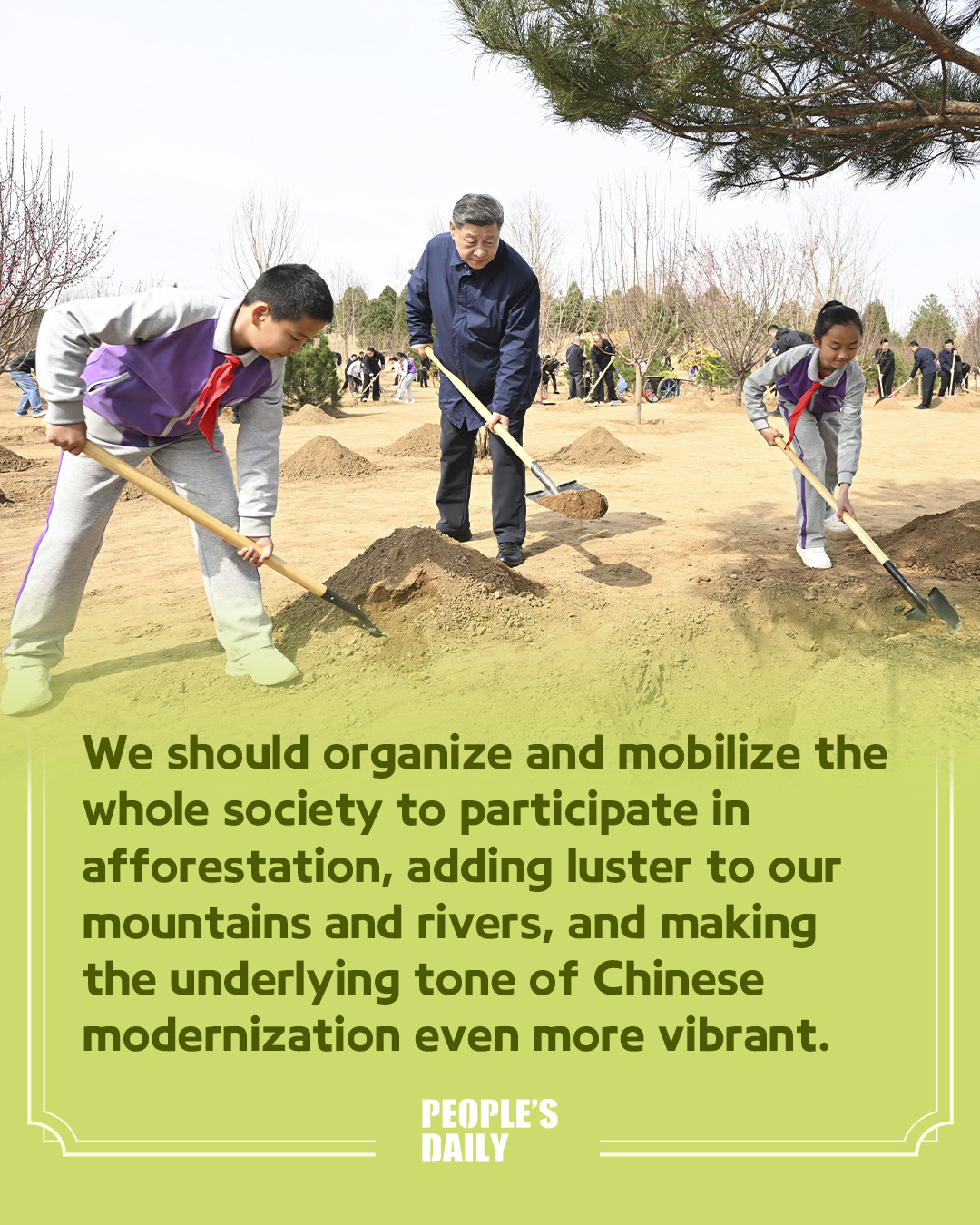 President Xi Jinping took part in a voluntary tree-planting activity in Beijing on Monday, March 30. Here are highlights from Xi's remarks during the activity.