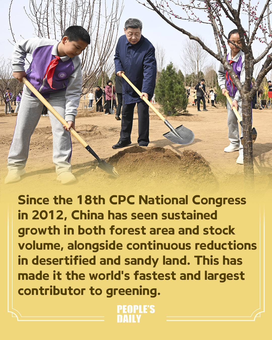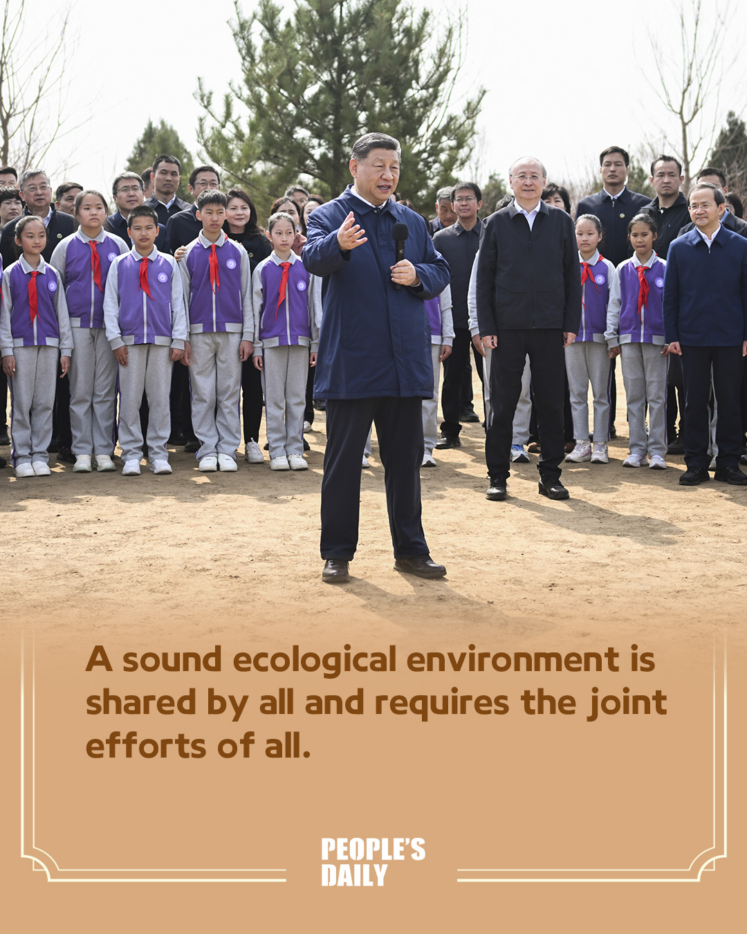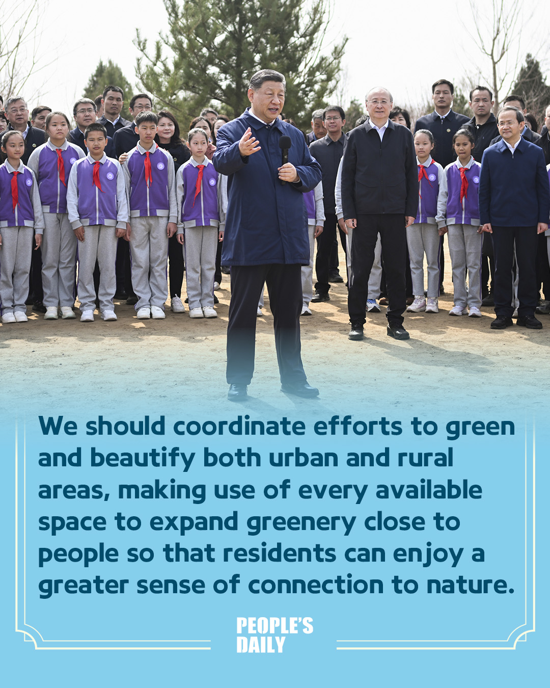 President Xi Jinping took part in a voluntary tree-planting activity in Beijing on Monday, March 30. Here are highlights from Xi's remarks during the activity.