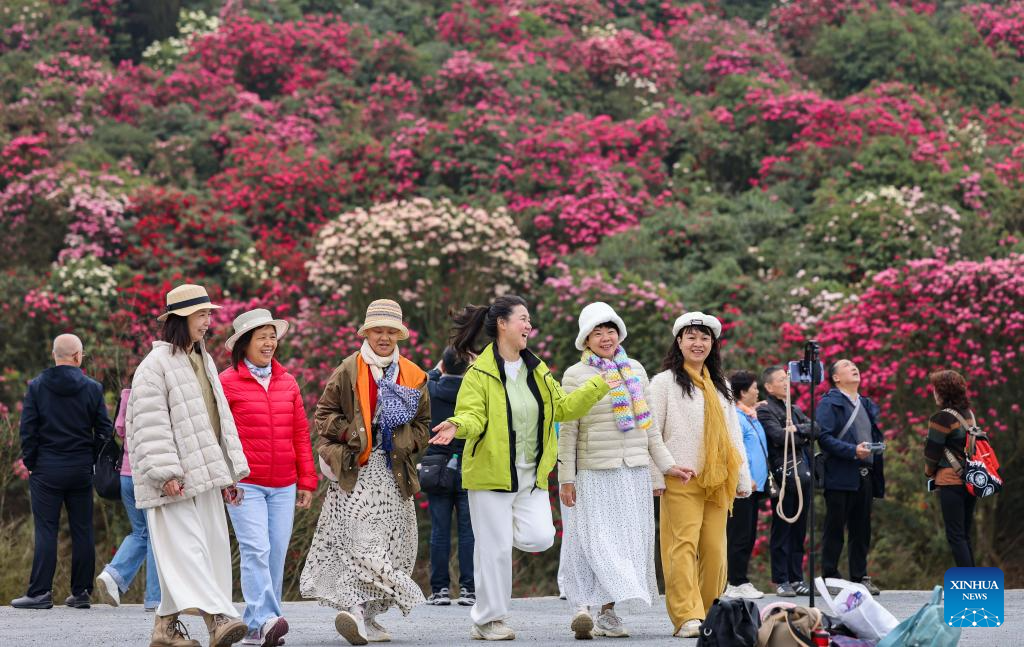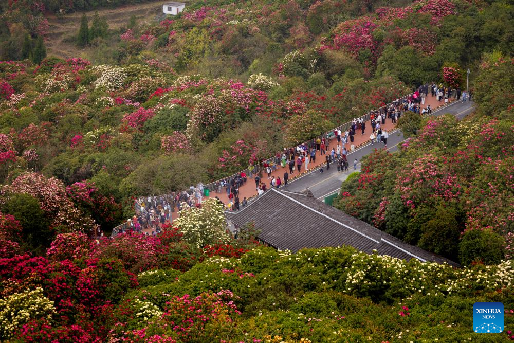 This photo shows azaleas at an azalea scenic area in Bijie City, southwest China's Guizhou Province, April 1, 2026. The azaleas in Bijie are currently in full bloom, drawing crowds of visitors. (Xinhua/Liu Xu)