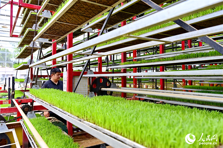 At a rice seedling factory in Hengshi town, Nankang district, Ganzhou, east China's Jiangxi Province, tech-savvy farmers monitor the growth of rice seedlings cultivated on multi-layered, 360-degree rotating racks.
